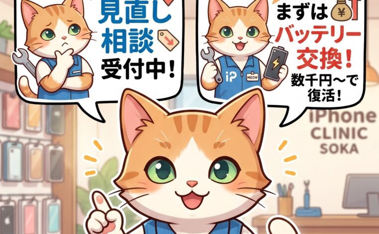 スマホ代を払いすぎていませんか?通信費の見直し相談&「バッテリー劣化=買い替え」の罠を解説!草加駅東口のiPhone診療所 草加店です!「毎月のスマホ代、1万円を超えていて高いな…」 「バッテリーが持たないからショップに行ったら、高い最新機...